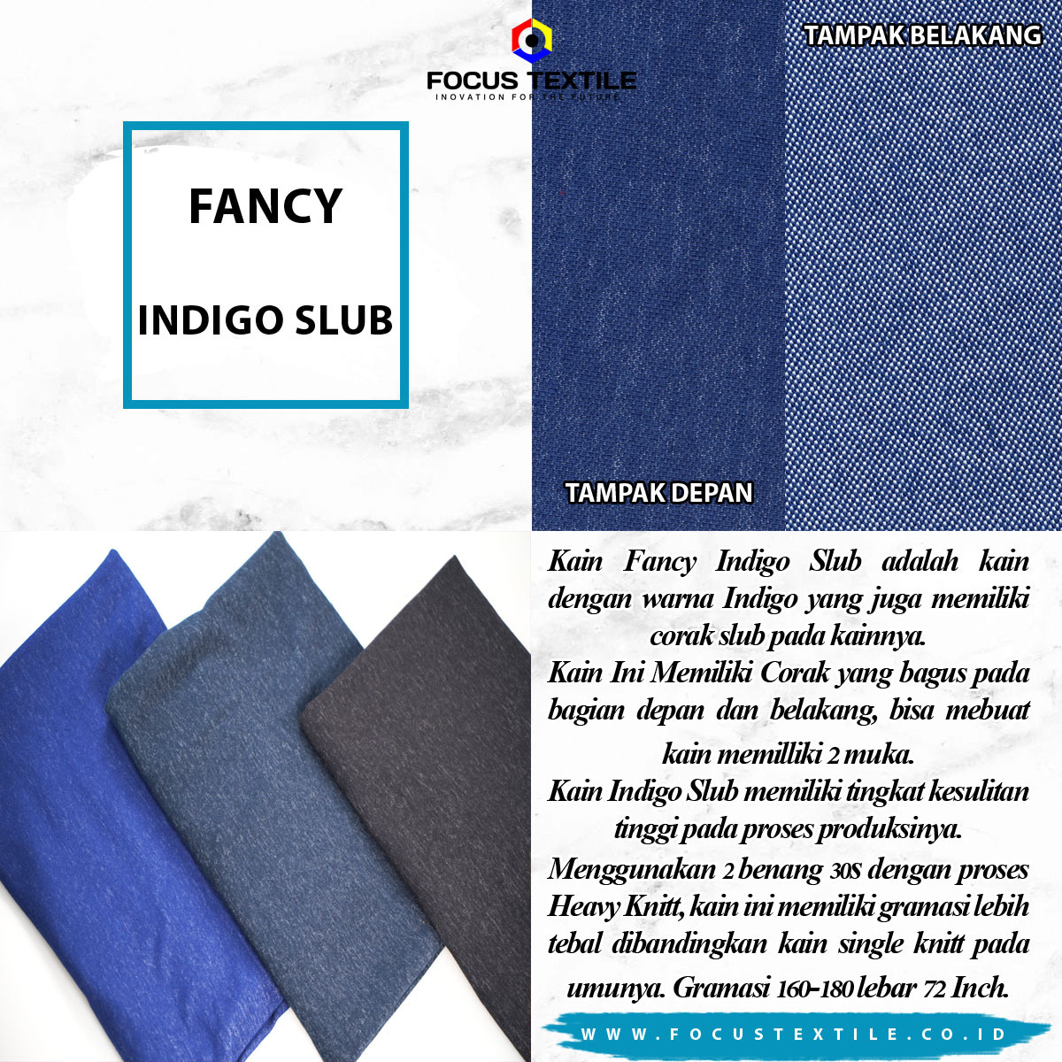KAIN FANCY INDIGO SLUB ADALAH KAIN DENGAN WARNA INDIGO YANG JUGA MEMILIKI CORAK SLUB PADA KAINNYA.